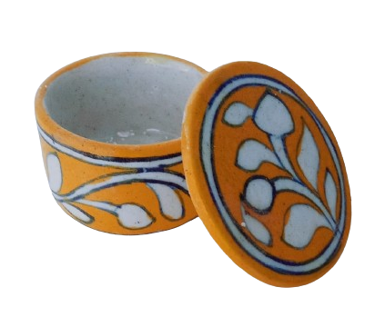 Charming Blue Pottery mini box with lid in vibrant orange, perfect for décor and gifting.