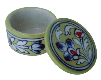 Handcrafted Blue Pottery mini box in elegant green, blending utility with artistry.
