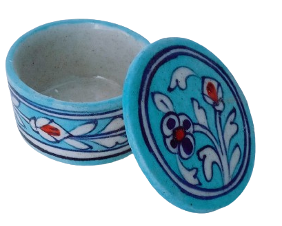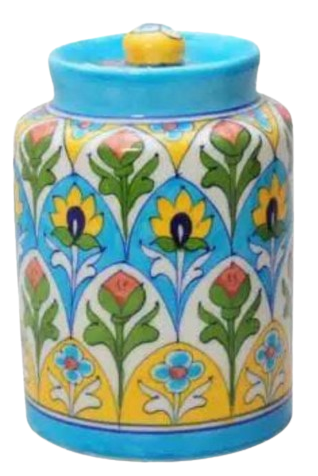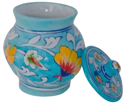 Handcrafted Blue Pottery storage jar, perfect for functional yet stylish décor.