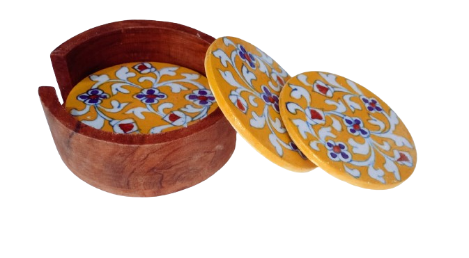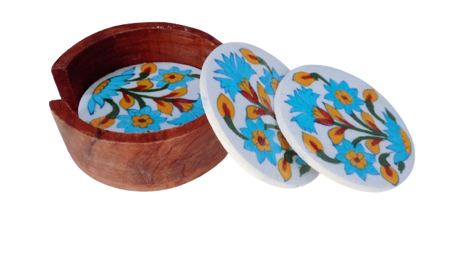Artistic Blue Pottery coaster set, combining tradition with modern table décor.