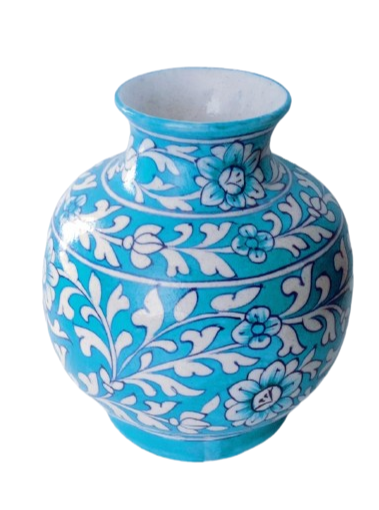 Artistic Blue Pottery round vase, adding elegance to modern and traditional interiors.
