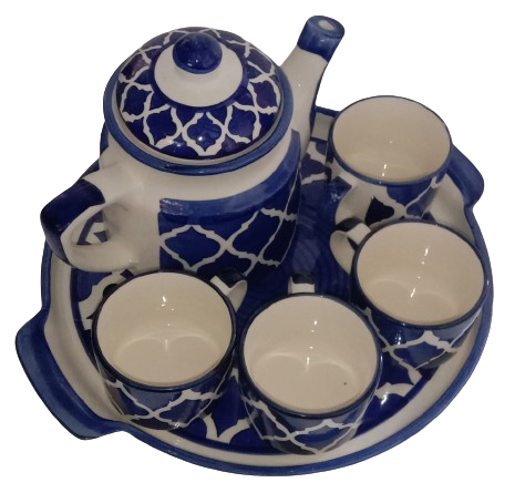 Elegant Blue Pottery handcrafted kettle set, blending tradition with functional charm.