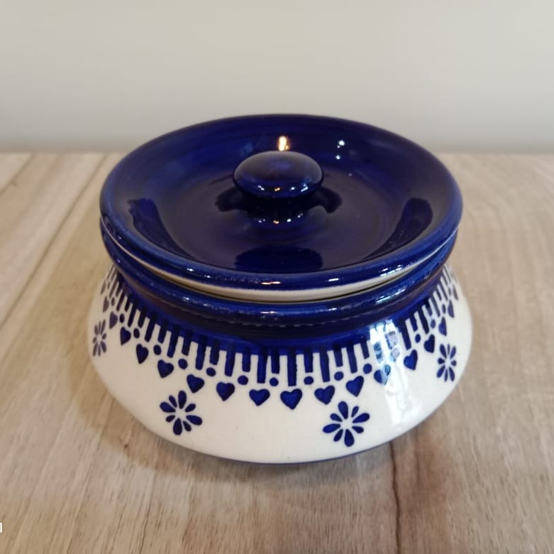 Artistic Blue Pottery rice bowl with lid, blending utility and timeless charm.