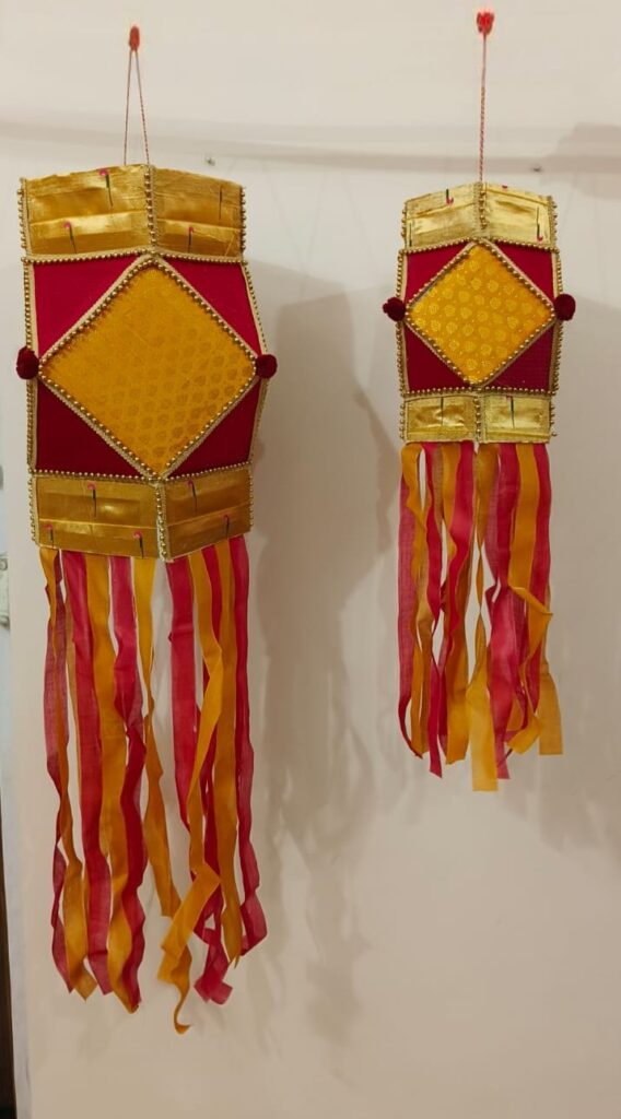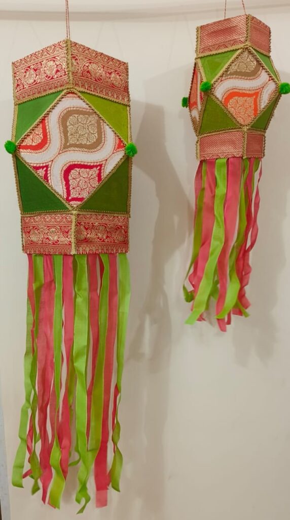 Colourful cloth-crafted Akash Kandil, reflecting the joy and spirit of Indian festivals.