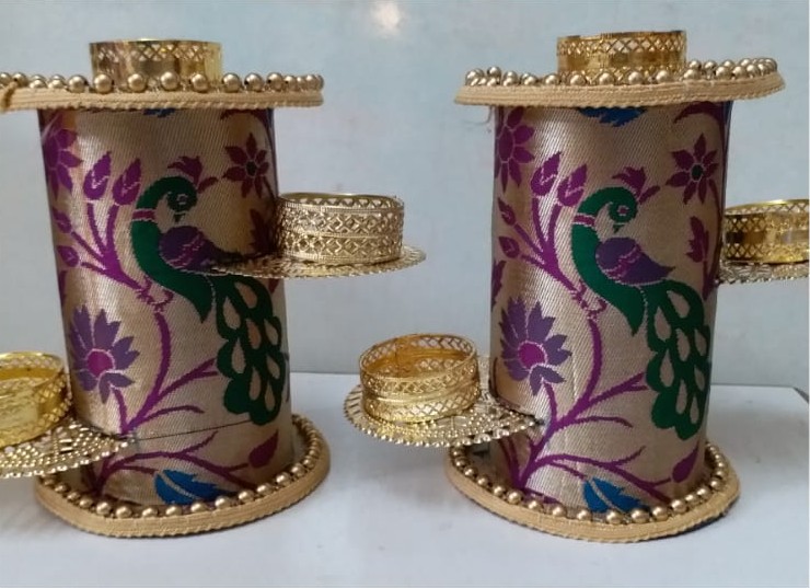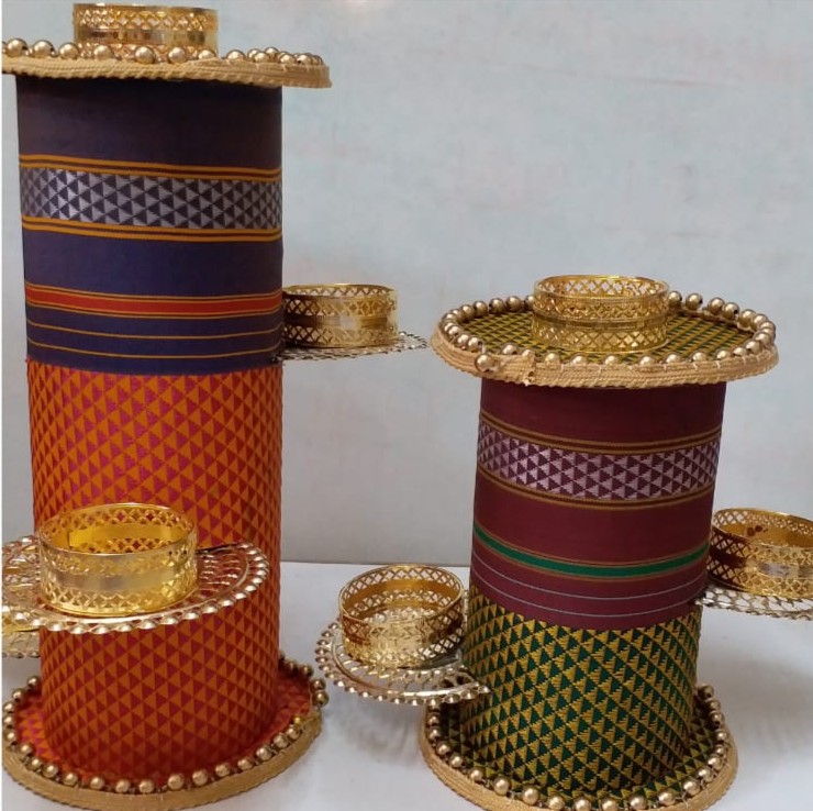 Handcrafted decorative candle stand with fabric finish, blending artistry and sustainability.